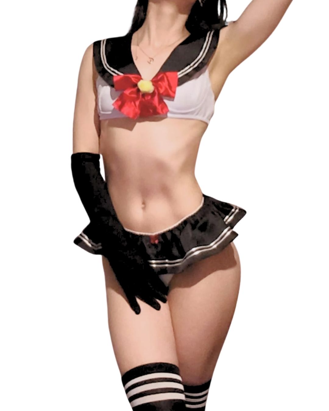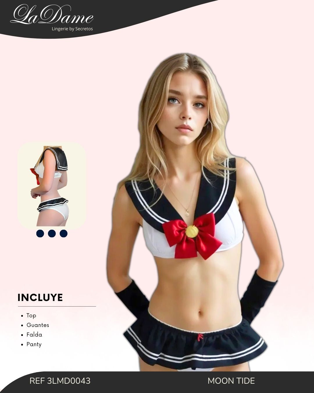 4 piezas: top, falda, panty, guantes largos